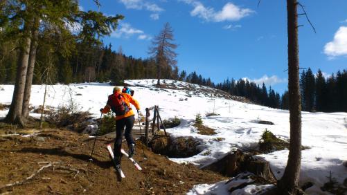 Zuerst gab’s wieder ein gutes & gemütliches Frühstück beim Schallerwirt. Nach Ausrüstungscheck starten wir 3 dann direkt vom Haus weg Richtung Tockneralm. Das Wetter ist ein Traum und die Schneelage auch noch gut. Zwischendrin sind dann doch braune & grüne Flecken aber das stört uns nicht weiter, man spürt schon den Frühling! Für mich war es ein beschwerlicher Aufstieg (vor allem weil ich zum Schluss mit Problemen mit meiner Ausrüstung zu kämpfen hatte), auch die Abfahrt war sehr fordernd diesmal. Trotzdem alles in allem eine superschöne Tour, Maggie ist super gegangen (erste Skitour) und hat jetzt endlich auch die Faszination für diese Sportart entdeckt und mein wöchentlicher Gipfel!!